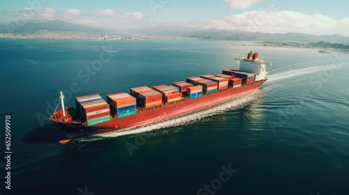 Large cargo ship transporting shipping container over oceans and around the world. generative AI