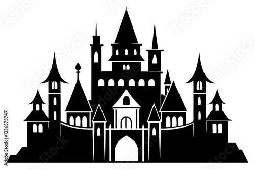 large castle minimalistic line art silhouette vector illustration