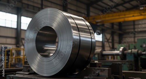 Large Coil of Shiny Steel in a Modern Industrial Factory Setting