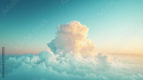 Large cumulus cloud formation above other clouds at sunset.