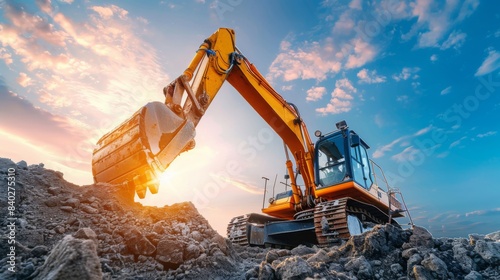large excavator blue sky construction site , blue sky construction heavy machinery excavator rental