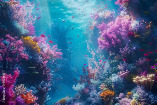 large group of fish swimming in large aquarium, breathtaking underwater scene showcasing colorful coral reef teeming with diverse marine life