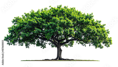 Large, lush green tree with a massive canopy and sturdy trunk, isolated on black background