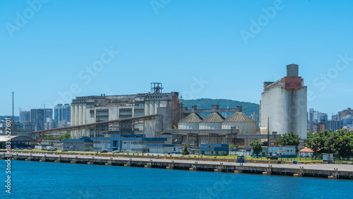 port, grain, silos, terminal, industrial, storage, building, architecture, commercial, industry, cargo, export, water, harbor, dock, shipping, city landscape, urban, transport, logistic, massive, structure, trade, metal, concrete, facility, machinery, equipment, warehouse, blue, sky, sunny, maritime, sea, ocean, business, modern, scale, landscape, big, construction, economy, manufacturing, infrastructure