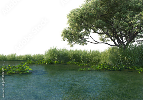 Large trees by the canal on a transparent background