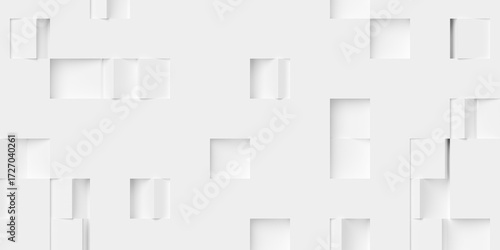 Large white rotated boxes or cubes geometry background wallpaper banner sparsely scattered, flat lay