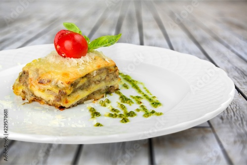 lasagna, parmesan, closeup, leaf, dish, italian, meal, bolognese, basil, slice, beef, plate, crust, white, mozzarella, cherry tomato, eatery, homemade, salad, layer, lasagna, vegetable, macro, dinner, tomatoes, pasta, garnish