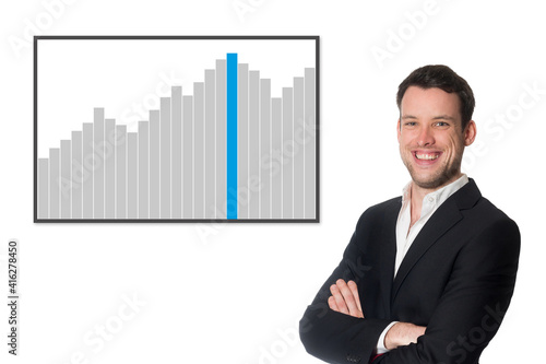 man, business, businessman, standing, black, young, board, graph, finance, blue, line, analysis, marketing, diagram, statistic, professional, improvement, market, stock, money, investment, share, growth, trading, profit, success, rise, trend, financial, economy, exchange, boom, investing, trade, datum, person, portrait, model, male, white, background, isolated, happy, office, smiling, laughing, management, chart, scheme