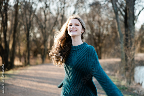 teenage, teenage, young, girl, people, female, happy, laughing, pretty, smiling, happiness, fall, hair, student, joyful, brunette, carefree, sweater