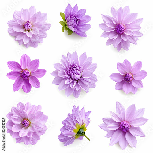 Lavender Dahlias Nine floral views, isolated on white. Ideal for design projects or websites