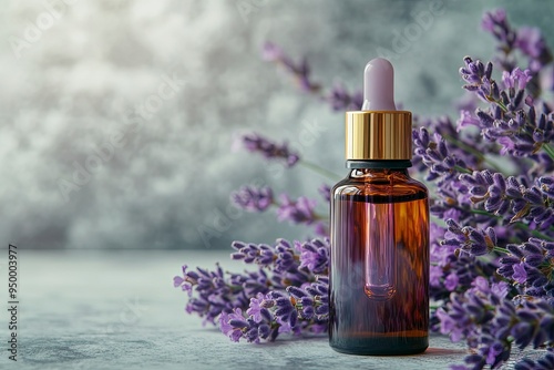 lavender essential oil in glass bottle with fresh lavender flowers, concept of alternative medicine and aromatherapy spa massage and aromatherapy. High quality photo. Generative Ai