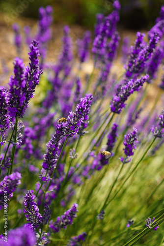 Lavender field in Provence, France. Close-up of bee pollen from lavender flowers