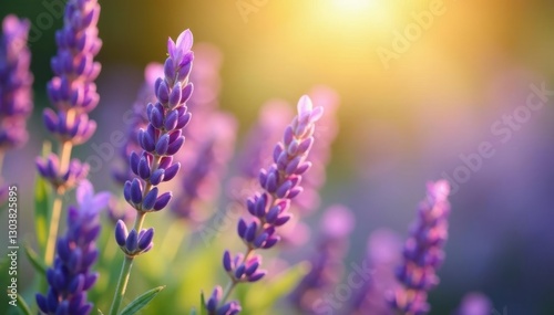 Lavender flowers in the sunlight filtering through, delicate petals, soft focus, bloom highlights