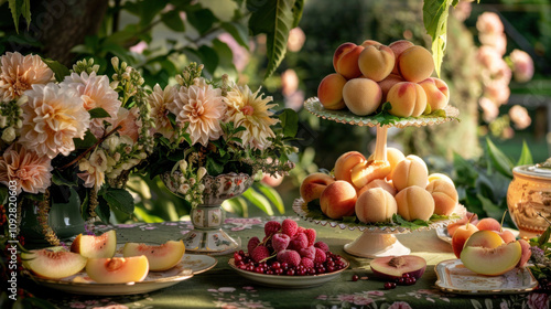tea, garden, victorian, fruit, peach, melon, flower, berry, elegant, widener, afternoon, style, decor, delicacy, presentation, epicure, pastel, vintage, ambience, pastry, picnic, nature, floral, design, aesthetic, celebration, luxury, refreshing, vibrant, catering, harmony, feast, opulent, tranquil, gathering, cosy, chic, favor, handcraft, rustic, sunshine, relaxation, detail, artisan, texture