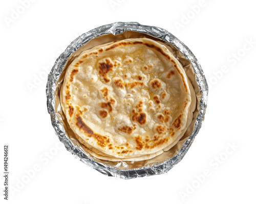 Layered Delight: Savor the warmth of golden, layered paratha, nestled in a pristine silver foil, promising a delectable and authentic culinary experience.