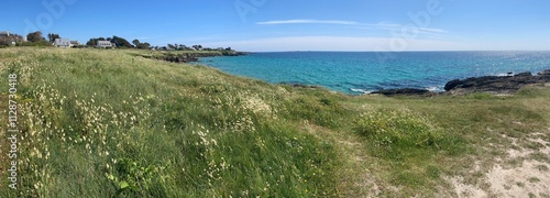 coast, sea, ocean, beach, rock, surf, pebble, path, pathway, shaft, vegetation, colourful, cape, field, dune, sand, wave, viewpoint, bathing, tour tourism, expanse, wild, panorama, shore, loftiness, landscape, saint-pierre, heaven, sun, blue, green, flow, summer, travel, flowing, blustery, view, horizon, scenic, distance, vacation, shore