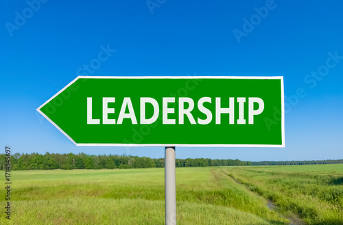 Leadership symbol. Concept word Leadership on beautiful green road sign. Beautiful blue sky green grass and forest peaceful nature background. Business leadership concept. Copy space.