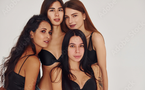 girl, female, woman, 4, people, together, fashion, body, sexy, sensual, bra, underclothing, lingerie, attractive, adult, background, white, caucasian, european, beautiful, figure, posing, pretty, slim, shape, young, model, trendy, hot, erotic, friends, indoor, girlfriend, style, passion, skin, studio, temptation, elegant, joy, glamour, vogue, bikini, swimwear, fit, isolated, gorgeous, portrait, intimate, naked