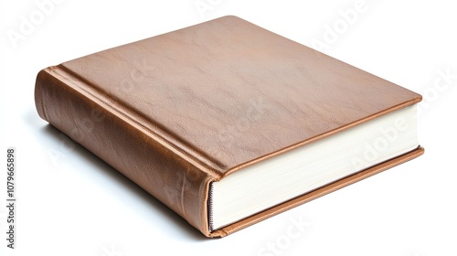 Leather bound book on white isolated background, perfect for literature and education themes.