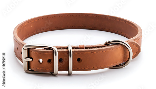 leather dog collar on transparent or white background, pet collar, front view