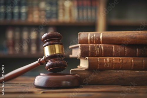 Legal Concept with Judge Gavel and Law Books in Court Background