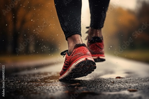 Legs And Shoes Of Runner In Rainy Autumn Weather