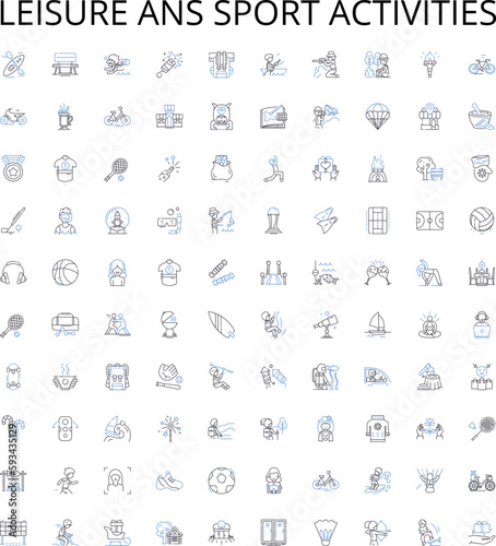 vector, icon, line, skiing, swimming, cycling, hiking, climbing, kayak, mountaineering, surfing, snowboarding, fishing, running, yoga, volleyball, badminton, skateboarding, squash, basketball, tennis, golf, rollerblading, sailing, archery, cheerleading, kickboxing, rock climbing, aerobic, pilates, hunting, rugby, frisbee, dance, pool, dart, stadium, boating, canoeing