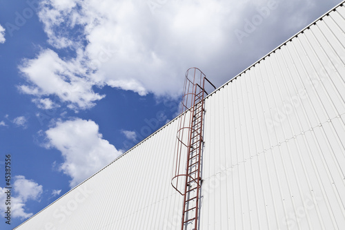 blue, container, fire ladder, emergency exit, escape, emergency exit, industry, industrial building, emergency exit, staircase, cloud, exit, blue skies, roof, heaven, high, ladder, security, climb, career, corporate ladder, success
