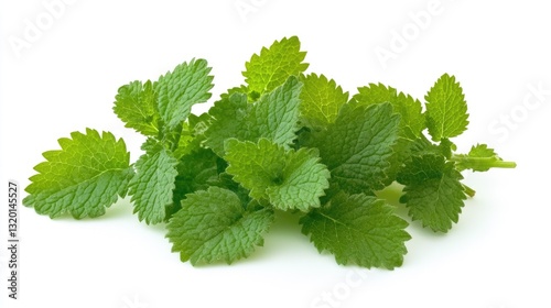 Lemon Balm, Freshly Harvested Herb on White Background Isolated Shot
