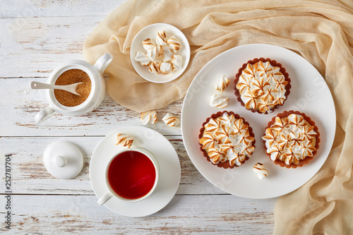 tartlet, meringue, rustic, lemon, tart, up high, chocolate, brown, cake, tea, mini, closeup, cookery, delicious, dessert, filling, food, homemade, overhead, pastry, pie, closeup, kitchen, sweet, tasty, topview, traditional, wooden, receipe, background, baking, napkin, sugar, nobody, plate, table, whipped, white, baked, crust, custard, eat, ingredient, horizontal
