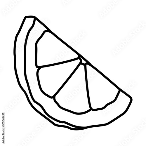Lemon slice, linear drawing. Icon. Lemon linear icon. Sketch for coloring. Fresh fruit illustrations for summer banners