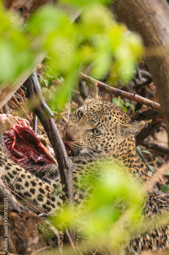Leopard is eaten in the hiding place