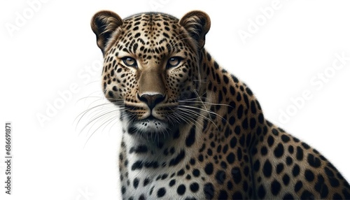 leopard, portrait, isolated on white, realistic, animal, wildlife, big cat, predator, fur, detailed, wild animal, carnivore, nature, majestic, fierce, spot, felino, closeup, animal portrait, powerful, gaze, solitary, safari, african wildlife, natural, beautiful, stealth, hunter, elegance, animal kingdom, whisker, conservation, high-coloured, illustration, photorealistic, zoo animal, graceful, strength