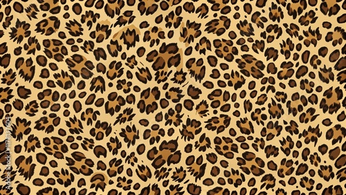 Leopard print seamless pattern with dark golden hues and brown undertones featuring a repeating design of spotted fur textures on a neutral beige background, spot pattern, wildlife pattern