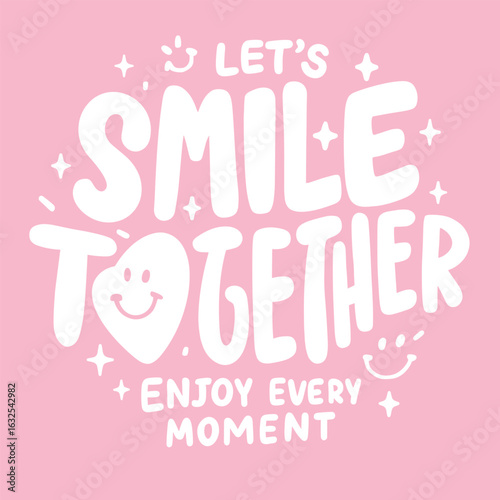 smile, together, pink, happy, quote, positive, fun, cute, cheerful, sweet, pastel, vibe, mood, love, joy, message, encouraging, uplifting, friendly, modern, text, typography, bright, youth, expression, kind, friendship, doodle, motto, illustration, graphic, trendy, minimal, sticker, drawing, motivation, casual attire, cool, visual, light, lovely, playful, encouragement, shine