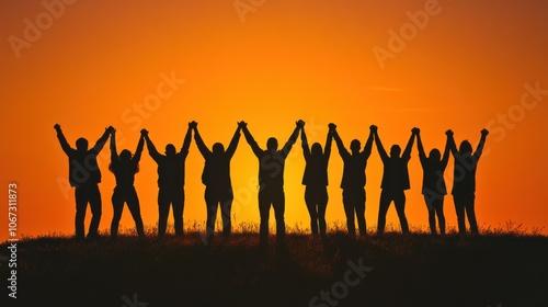 Lets stand together. Shot of a group of unrecognizable people holding hands together in the air.