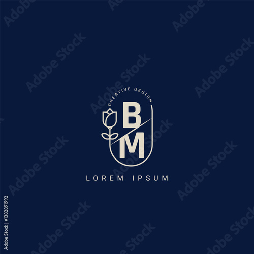 Letter BM and MB creative logo with beauty floral concept premium vector