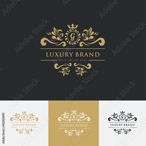 Letter G Luxury. elegant with crown logo vector, Creative Lettering Logo Vector Illustration.
