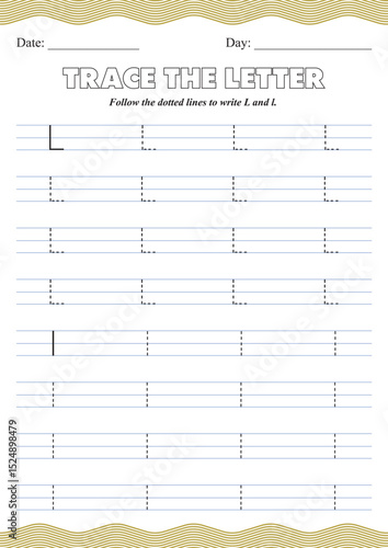 Letter L Tracing Worksheet – Handwriting Practice Printable for Preschool and Kindergarten – Uppercase and Lowercase L Alphabet Sheet