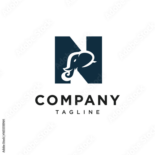 Letter N Elephant Head Logo Icon Vector