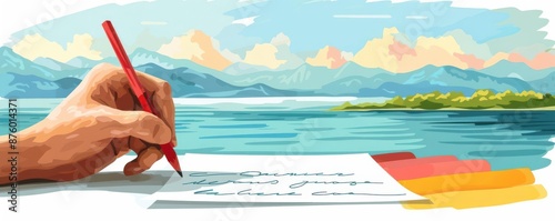 letter writing hand flat design front view nostalgia theme water color Split-complementary color scheme