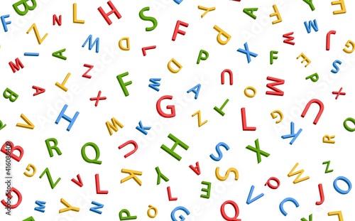 Letters. Abstract colorful background. Seamless pattern. Symbols with volume effect. Cover design template, background, t-shirt, wrapping paper. Isolated. Vector illustration