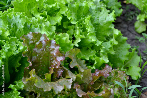 Lettuce salad. Lactuca sativa. Annual herbaceous plant. Beautiful green background of nature. Vegetable
