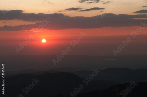 Lever de soleil dans la brume