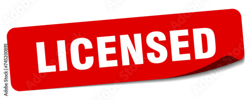 licensed, sticker, label, peeler, signs, banner, isolated, rectangular, red, template, vector, white background