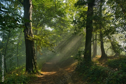 nature, countryside, summer, autumn, panorama, tree, forest, mount, flux, water, travel, german, beam of light, fog, sunbeam