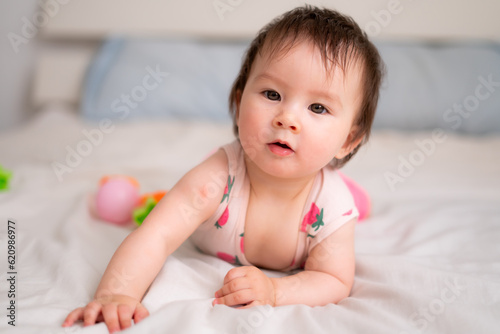 baby, baby girl, playing, toy, block, colours, bed, fun, happy, enjoying, children, beauty, beautiful, adorable, pretty, small, children, childhood, lifestyle, indoor, portrait, expressive, expression, joyful, cheerful, toddler, 7, 8, 9, daughter, home, lying, playful, high-coloured, clean, excited, sweet, cute, asian, caucasian
