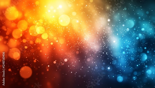 Light Beams And Bokeh Circles Abstract Design, Colorful Lights Background With Glowing Effects.