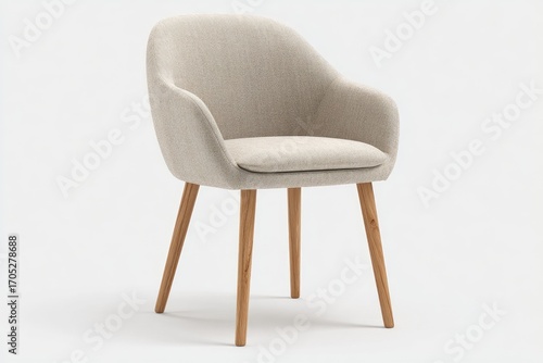 chair, armrest, upholster, beige, light, wooden, leg, modern, simple, dining, accent, comfortable, minimalist, furniture, design, home, decor, living, room, studio, office, neutral, solid, fabric, cushion, support, ergonomic, contemporary, elegant, style, clean, line, oak, plain, texture, upholstery, product, isolated, photo, rendering, three-dimensional