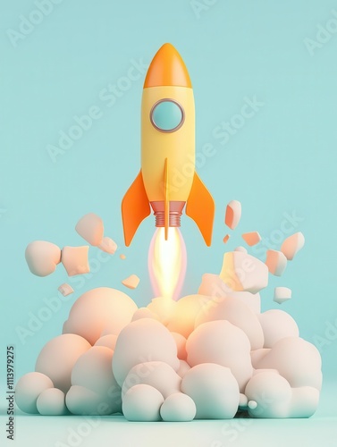 Light bulb rocket shattering through barriers, symbolizing breakthroughs, 3D rendering